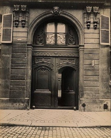 Atget's sublime and ghostly images of Paris were usually captured in the quiet light of the early or pre-dawn hours, when the city was still adequately free of traffic and people and he could work undisturbed. He managed to capture, forever, that bygone Paris of another era, an age of refinement and culture, rich with the architectural details of its cobbled streets, hotels, shops, quays, gardens, churches and courtyards. Atget deliberately excluded any mention of the relentless modernity and progressive industry fast encroaching on his Paris - the Eiffel Tower, with its complicated iron latticework, is conspicuous by its absence from his work. Instead, he focused his camera's lens on a more genteel Paris, the one which lay beneath all the novelty of iron and steel.
