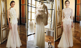 But perhaps the biography of Mr. Galliano, with the spectacular pinnacles and pitfalls of his career, had best be left for future historians to chronicle. Scandals and controversies not withstanding, after all is said and done, Paris is essentially about the age-old craft of haute couture - if nothing else. Couture itself has had a checkered history and its many demises - as well as its revivals - have been repeatedly predicted by designers and critics alike. But perhaps couture's future survival relies on young talent. In the hands of young designers (and, more literally, in the hands of new generations of skilled craftsmen and craftswomen necessary to realize a designer's vision and translate hypothetical ideas and dreams into realities), couture's future pertinently rests. Of the new generation of couturiers, Riccardo Tisci stands as a beacon of hope for the future of Paris fashion. As with previous Givenchy couture collections, for his Autumn/Winter 2011 collection, Mr. Tisci's undoubted talent and comprehension of the art of French couture was once more patently evident in a minute collection of ten pieces - each piece exquisitely and painstakingly hand-wrought. Also as in previous collections, Mr. Tisci eschewed a runway presentation and had it photographed on ten models; later, the collection was appropriately installed as an art installation in the Place Vendôme. (“At these presentations,” reporter Nicole Phelps writes from Paris for style.com, the sartorial website, “every detail, however small, warrants his attention. On the one hand, a fragrance diffuser misted the scent of spring roses through the rooms; and on the other, Popol Vuh, circa Werner Herzog's Aguirre: The Wrath of God, played on the speakers.”) The art of haute couture is in the craftsmanship of details - it is a craft in which Mr. Tisci and the Givenchy ateliers excel. (Quote: Phelps, N., style.com, July 5, 2011)