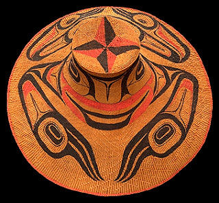 Woven on a stand with a wooden form appropriate to each size & shape by Haida women (who excelled in basketry), hats were then painted with the crests of the commissioning family by Haida male artists.